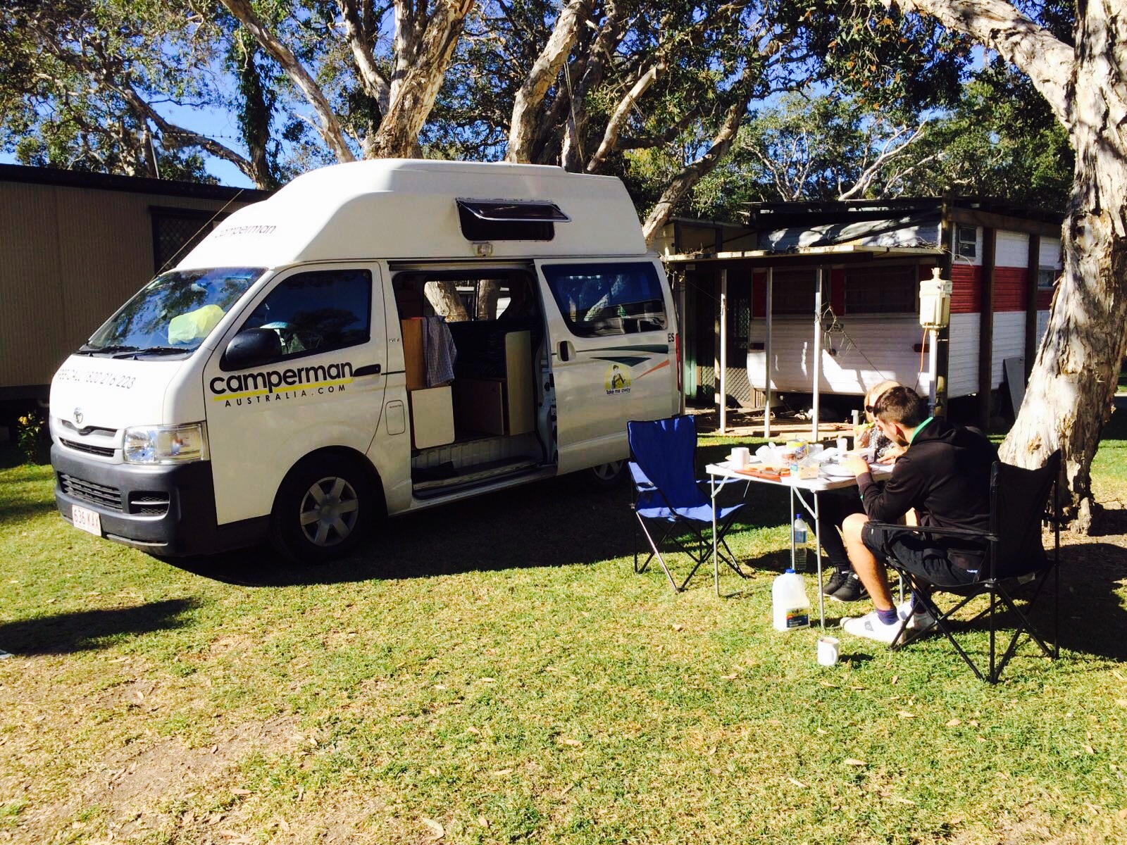 Heute sollte endlich unser 17-tägiger Roadtrip beginnen! Dafür haben wir erstmal mit Christophs Kumpel, der zufällig auch gerade in Sydney ist und uns erstmal begleiten wird, den Camper abgeholt. Zwar nicht das modernste Teil aber sehr gemütlich und völlig ausreichend!