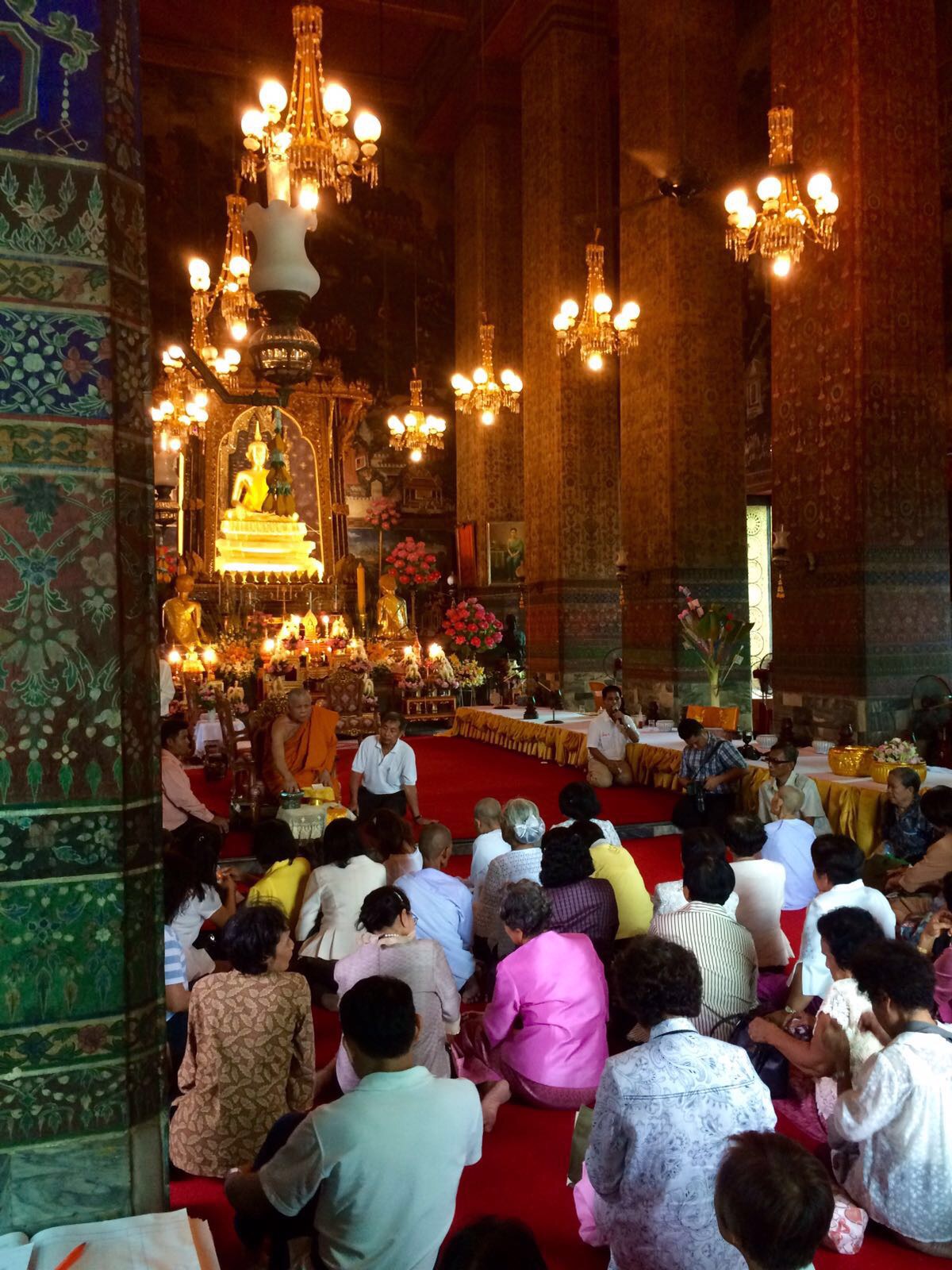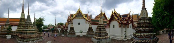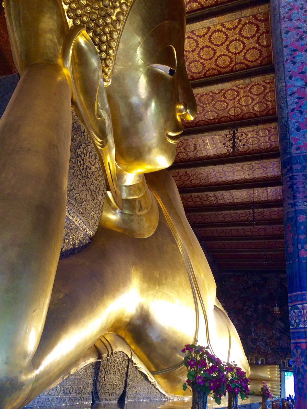 Am Ende fuhren wir zurück zum Anfangsziel und konnten endlich in einer der bekanntesten Tempel gehen: Wat Pho. Dort liegt die berühmte riesige goldene Buddhafigur in Mitten einer großen Tempelanlage.