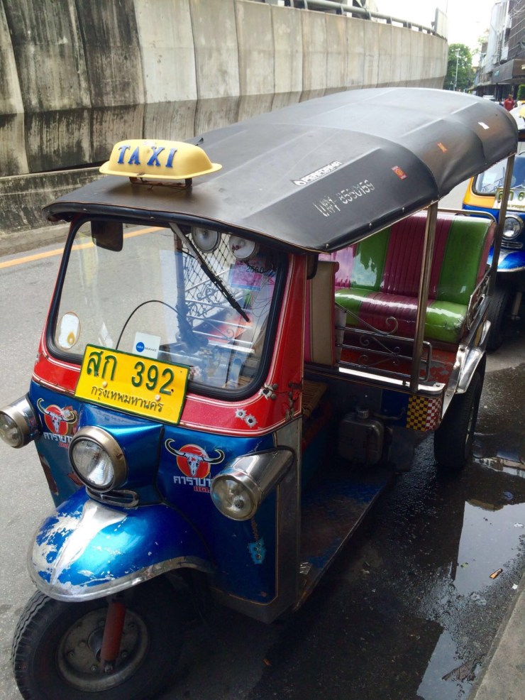 Auf unserem Weg kamen wir auch am ersten Markt vorbei, wo in einer engen Gasse endlos viele Stände waren. Unser Ziel war aber ein weiterer Tempel. Als wir dort allerdings ankamen wurde uns gesagt, dass die Mönche momentan dort beten und wir später wieder kommen sollten. Ein sehr netter Mitarbeiter gab uns Tipps was wir in der Zwischenzeit machen sollten und half uns ein günstiges Tuk Tuk für die Rundfahrt zu bekommen. Dadurch zahlten wir gerade mal 1,25€ um mehrere Stunden lang quer durch Bangkoks Altstadt zu fahren – unglaublich!