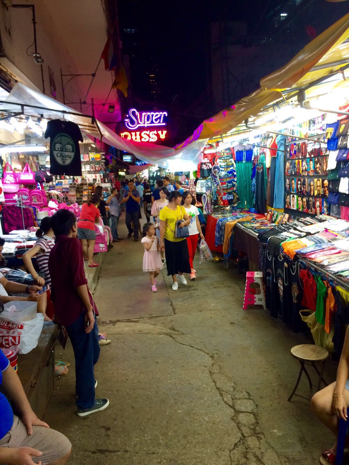 Abends haben wir uns auf den Weg zum berühmt berüchtigten „Rotlichtviertel“ Bangkoks gemacht. Dort sind wir zunächst in ein schickeres Restaurant gegangen bevor wir uns in die nach Patpong getraut haben. Erstmal fanden wir eine Straße mit sehr vielen guten Bars und spottbilligen Getränkepreisen. Danach landeten wir mitten im Zentrum zwischen Ständen, die allen möglichen Kram verkauften und vorallem vor vielen Clubs die sehr fragwürdige Shows anboten. Hier hat Thailand definitiv seinen verruchten Ruf her.