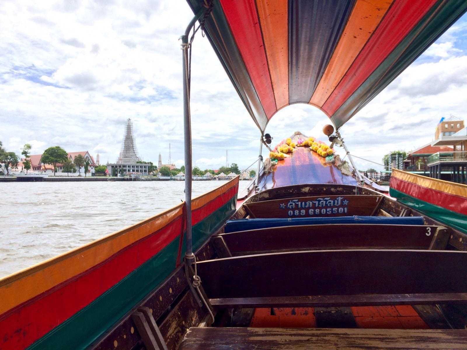 Wir sind noch auf die gegenüberliegende Seite des Flusses zum Tempel Wat Arun gefahren bevor wir mit dem Boot zum Skytrain und dann ins Hostel gefahren sind – wie gesagt alles etwas umständlich in dieser riesigen Stadt.