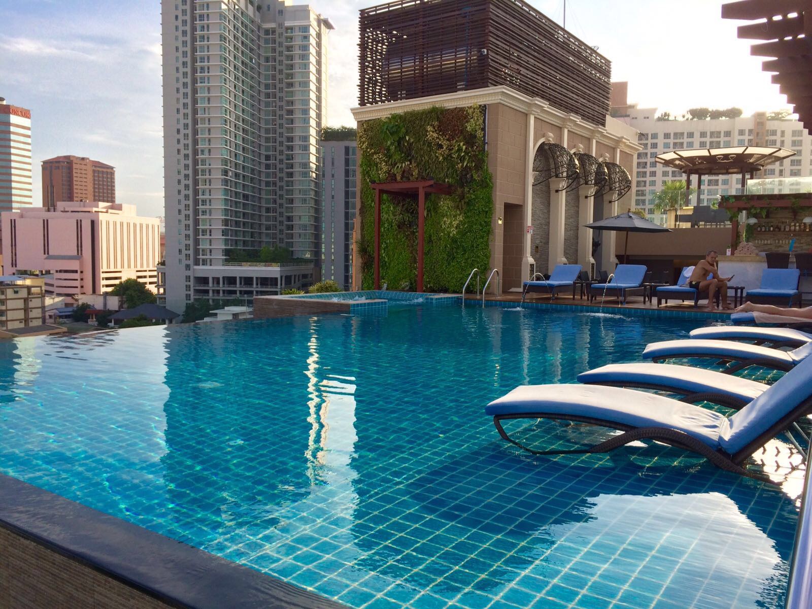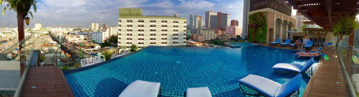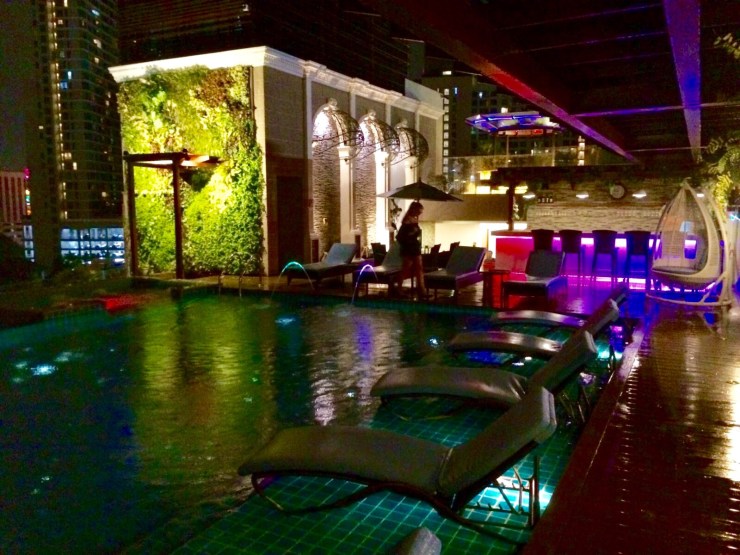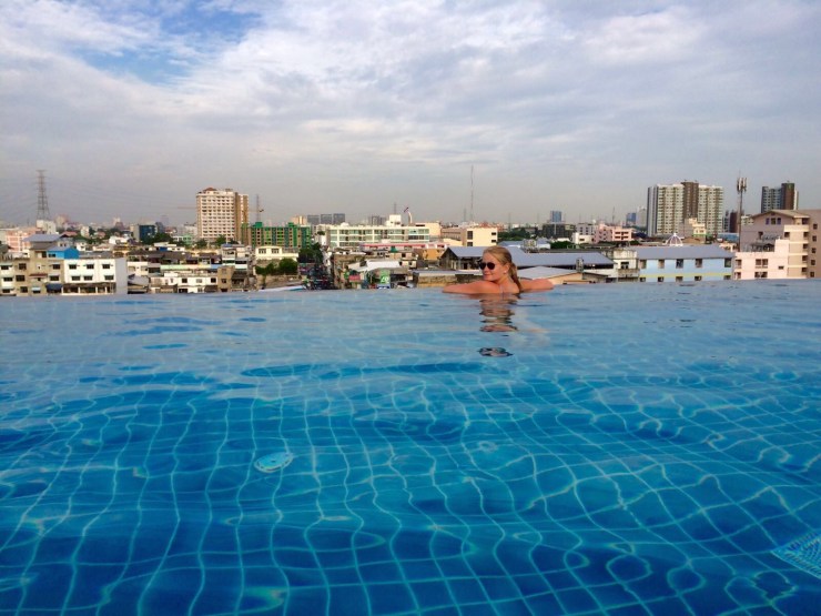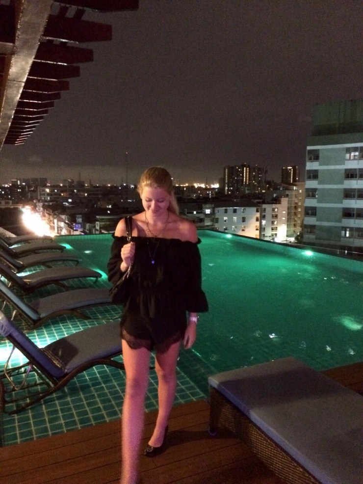 Wir gingen aber gleich zu unserem eigentlichen Ziel: dem Pool. Der lag auf dem Dach neben der Skybar. Wir hatten auch noch das Glück den ganzen Tag fast alleine am Infinitypool mit Whirlpool zu sein. Natürlich musste ich mir nochmal einen ordentlichen Sonnenbrand holen, dabei hatte ich es die ganze Zeit ohne geschafft!
