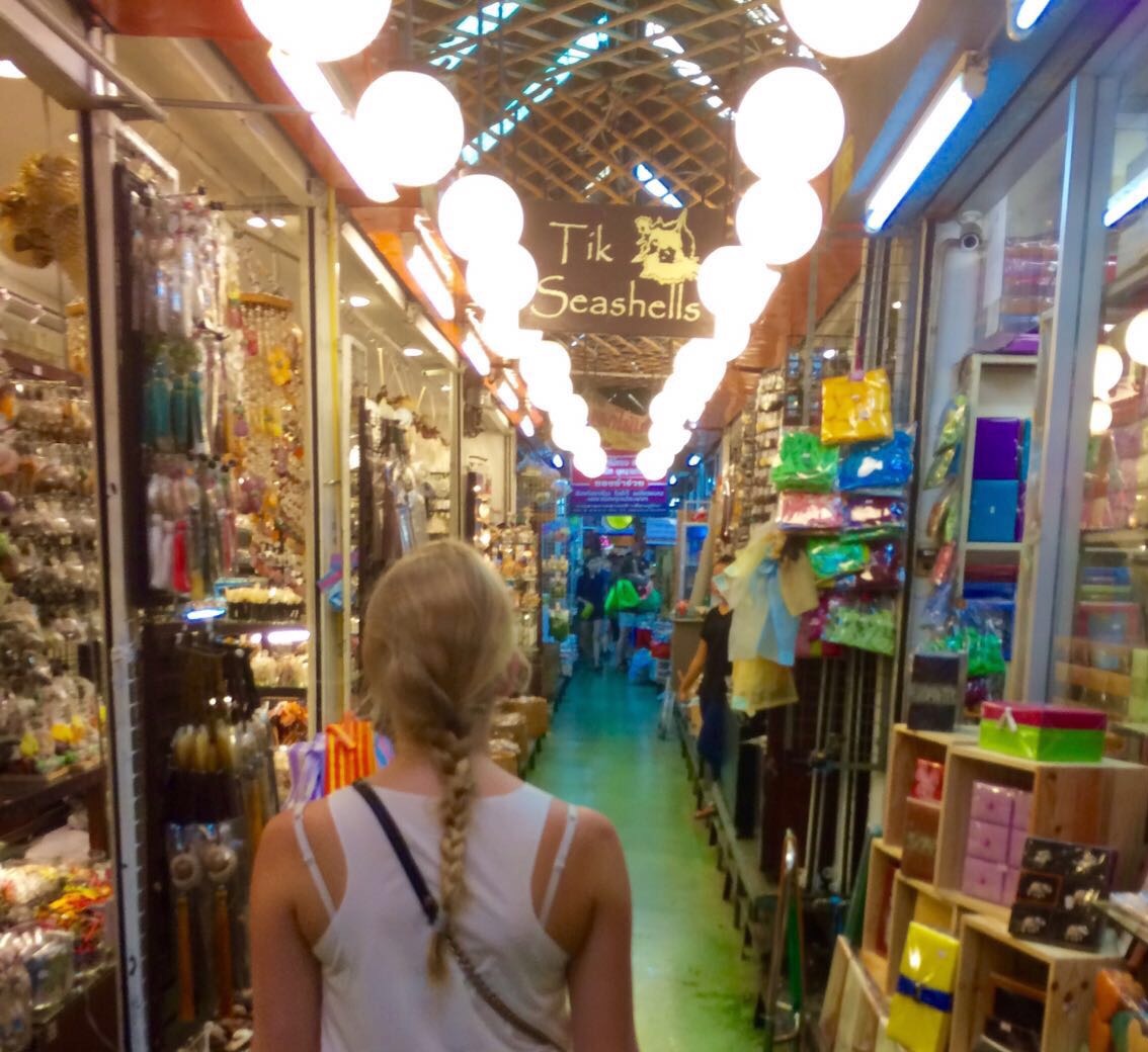 Am nächsten morgen ging das Sightseeing weiter. Diesmal fuhren wir zur Shoppingmeile Bangkoks. Allerdings waren auch hier größtenteils nur große Shoppingcenter zu finden. Also ließen wir uns wieder etwas vom Tuk Tuk herumfahren. Um den Preis muss man hier natürlich immer ordentlich verhandeln, aber wenn man die Zeit hat kann man einfach 1-2 Stopps an Geschäften machen, die die Fahrer anfahren und so den Preis reduzieren. Das machen die Fahrer, da sie von den Geschäften Benzincoupons dafür bekommen, dass sie Touristen abliefern. Die Geschäfte bieten aber auch schöne Dinge an.