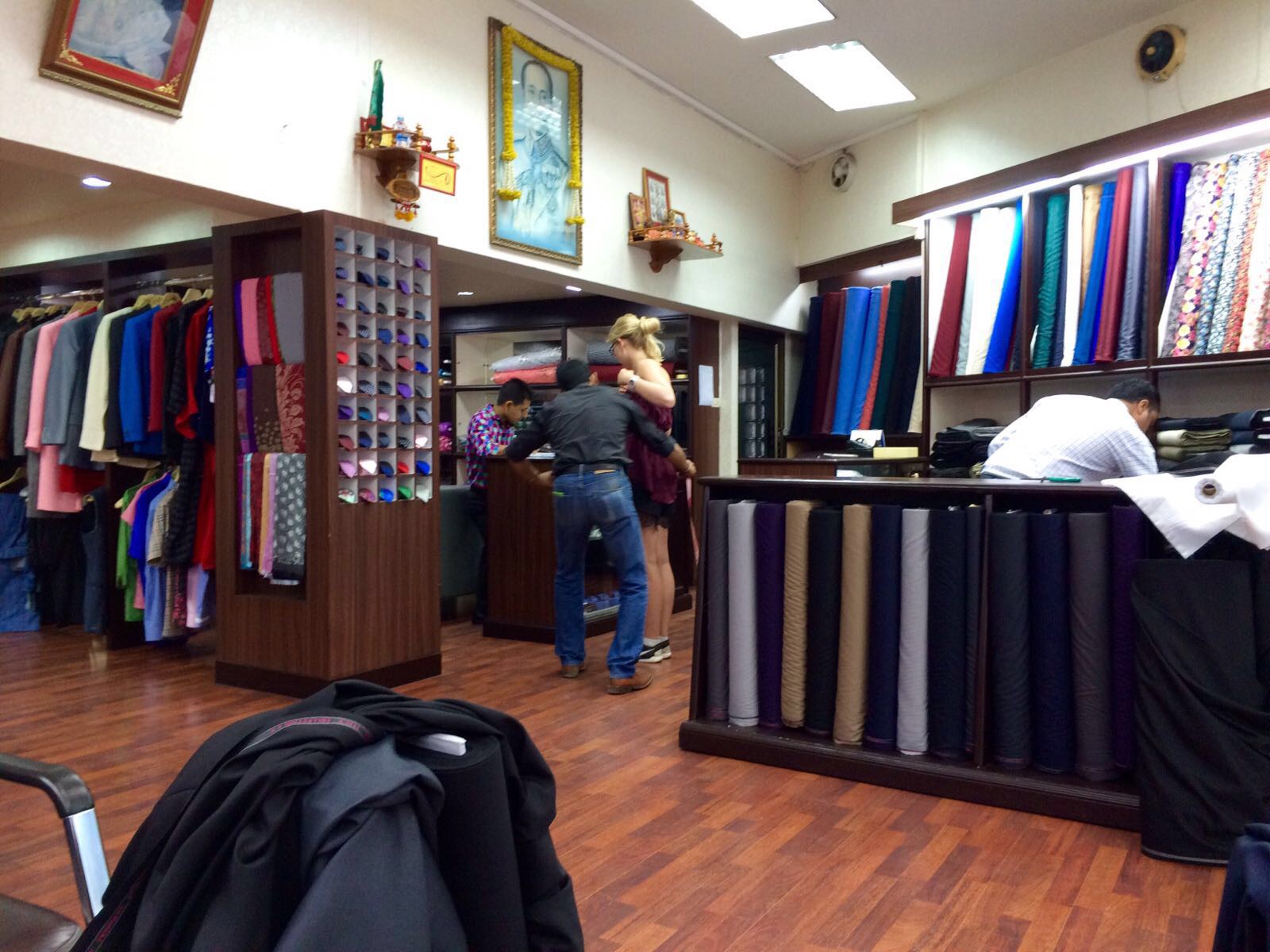 Am nächsten morgen wollten wir wieder ein paar Sehenswürdigkeiten sehen. Zufällig trafen wir ein Tuk Tuk das uns sehr günstig zum Königspalast bringen wollte. Für den günstigen Preis nahmen wir auch einen Stopp bei einer Maßschneiderei in Kauf. Zu unserem Glück, denn dort machte uns der Verkäufer nach harten Verhandlungen ein extrem gutes Angebot für einen maßgeschneiderten Kaschmiranzug für mich. Christoph hatte sich schon vorher einen traumhaften Anzug bestellt.