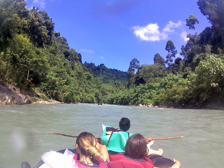 Dann steht das letzte Abenteuer an: Rafting. Dafür werden ein paar Reifen aneinander gebunden, auf die wir und unser Gepäck kommt. Vorne und hinten steuern die Guides. Da im Dezember schon die Regenzeit begonnen hat, hatten wir viel Wasser im Fluss und haben keine halbe Stunde gebraucht, um direkt vor unseren Cottages zu landen. Dafür war es ein umso holprigerer Weg, der aber wirklich genial war, da man einfach mitten durch den Dschungel gefahren ist. Unterwegs haben wir fast unser Gepäck verloren, was sich in den Stromschnellen losgerissen hat, aber es war gut eingepackt und unser Guide hat es gerettet. Mit Cocktails und Bier lassen wir den Tag noch ausklingen. Wirklich der perfekte Abschluss für einen unfassbar geilen Ausflug und eins meiner größten Abenteuer!