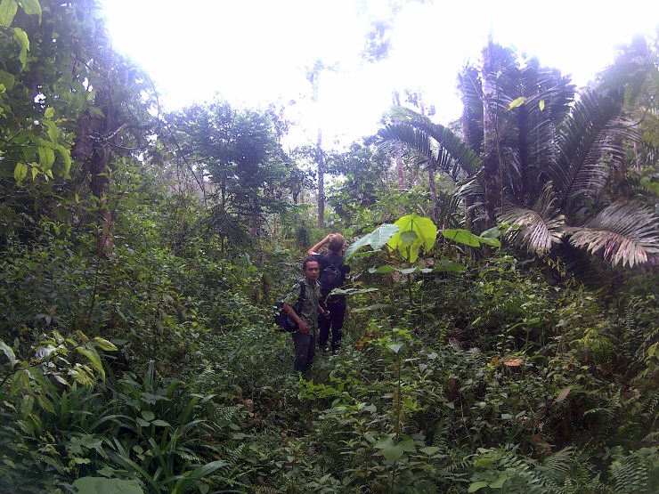 Schon nach rund einer halben Stunde Marsch hatten wir Glück den ersten Orang-Utan zu treffen. Ein Weibchen das friedlich im Baum hängt und isst. Während wir sie beobachten sagen uns die Guides schon Bescheid, dass gleich noch ein großer kommt. Im Vergleich zu den ganzen kleinen Affen die wir sonst so gesehen haben, kam mir dieser schon groß vor, aber ich habe alles zurück genommen, als ich schon vom Weiten gesehen habe, wie sich die Bäume biegen und ein riesen Orang-Utan auf uns zu gekommen ist. Ich bin schon zurück gewichen, aber die Guides beruhigen uns und sagen, dass er nichts macht und wir nur aufpassen sollen nicht unter ihm zu stehen. Kurz danach kommt das Männchen sogar runter und verfolgt das Weibchen. Wir kommen Ihnen ganz nah, aber die interessieren sich gar nicht für uns. Ein unfassbarer Glücksmoment für mich, der sich nicht in Worte fassen lässt.